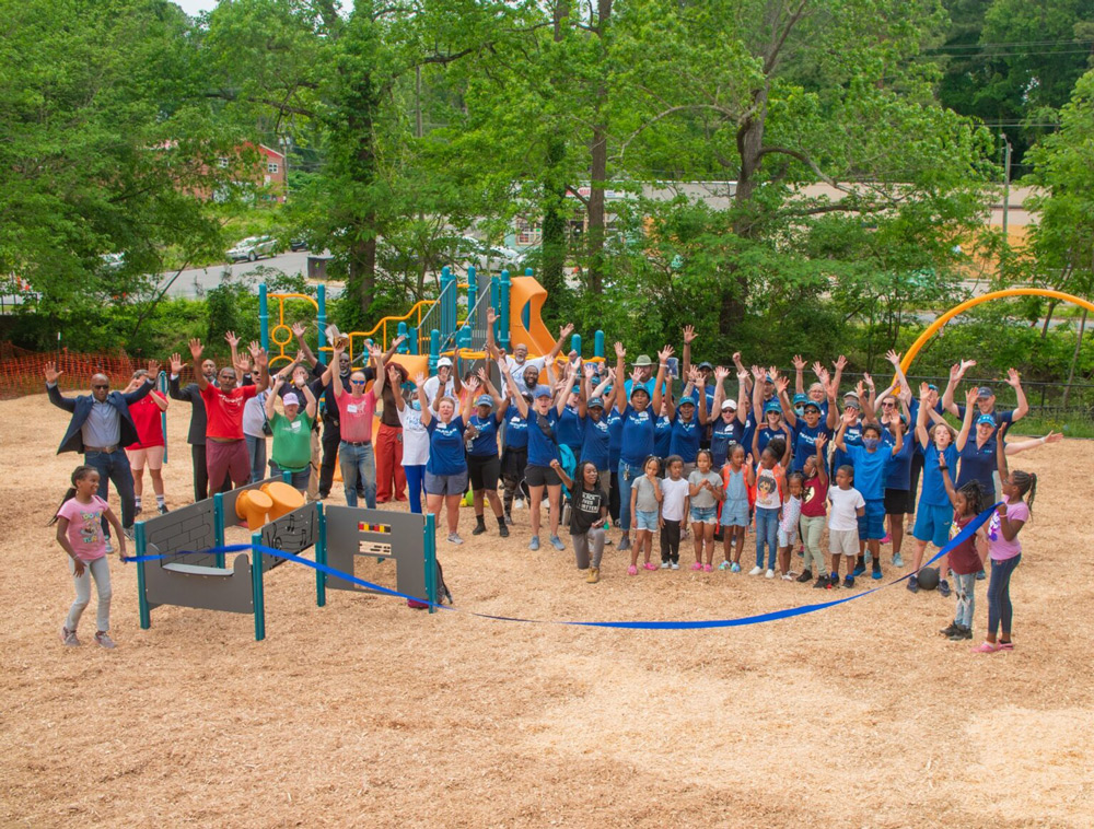 Blue Cross and Blue Shield of North Carolina (Blue Cross NC) understands that sidewalks and parking lots don’t offer the same opportunities for safe, imaginative play that green spaces and playgrounds do. Every child should have a safe place to jump around. That’s why we regularly support efforts to build and refurbish public spaces that promote overall well-being for individuals, families and communities.