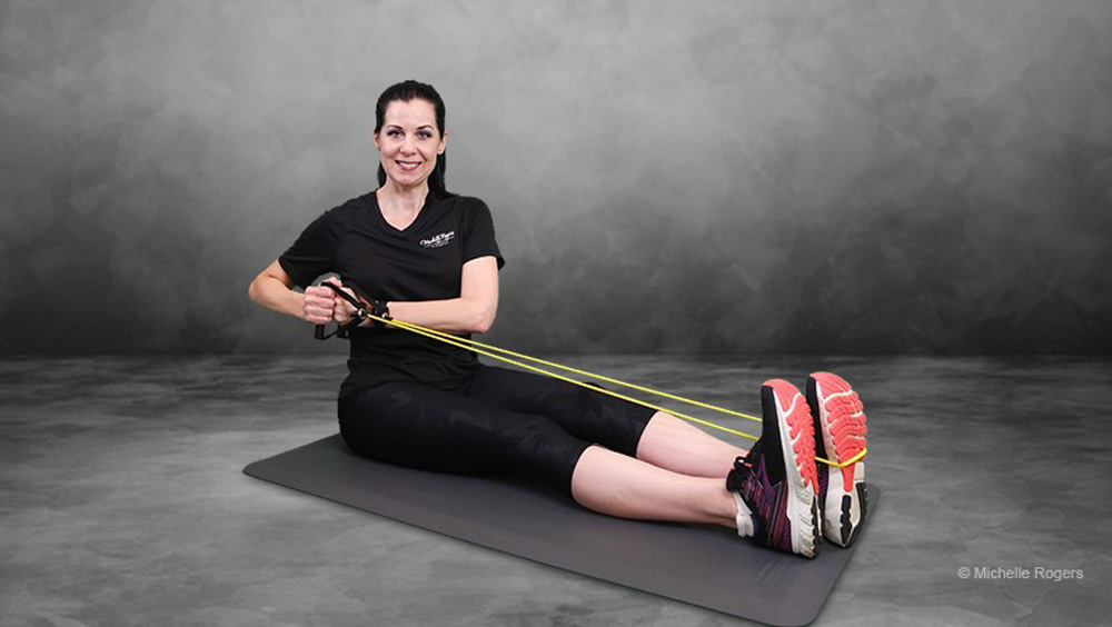 Bands challenge our body in a similar way to weights. But unlike weights, which rely on gravity, resistance band workouts use tension to add resistance to movements. Resistance bands are made from elastic rubber and come in two forms – wide and flat (called loop bands), or a tube with handles. This workout utilizes the tube with handles.