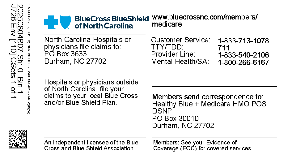 Healthy Blue + Medicare (HMO-POS D-SNP) offers a zero-cost share plan with valuable extra benefits, making health care more accessible and affordable for eligible members. This transition allows Blue Cross NC to deliver more coordinated, efficient care and support for both providers and members.